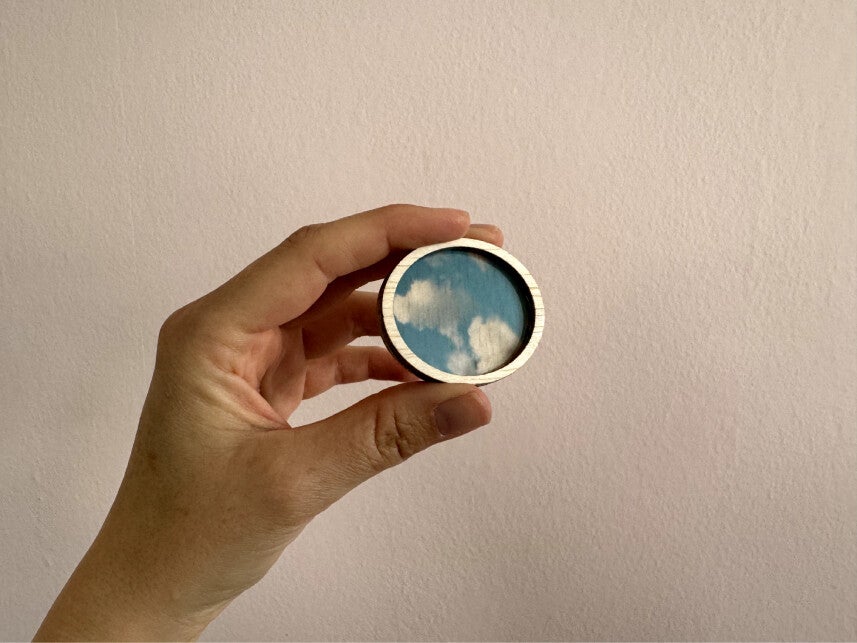 een foto die je kleding siert. zonder kleding te beschadigen want de broche is te bevestigen met een magneet.